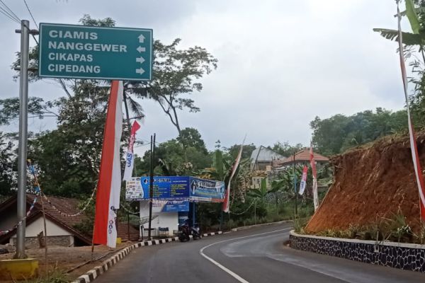 Sebelum melintasi persimpangan jalan, terdapat rambu petunjuk jalan yang dibuat besar layaknya di jalan raya kota.